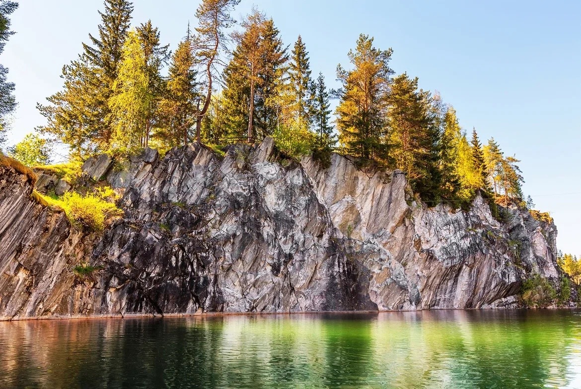 Потом вы погуляете по огромной территории горного парка «Рускеала». Его главной изюминкой является Мраморный каньон. Если раньше здесь добывали мрамор, используемый в отделке памятников архитектуры Санкт-Петербурга, то теперь он представляет собой озеро с чистой водой, мраморными берегами в окружении хвойных деревьев. Зимой с наступлением темноты включают художественную подсветку. Летом тут можно выбрать различные развлечения: катание на лодке, троллее и прочие.