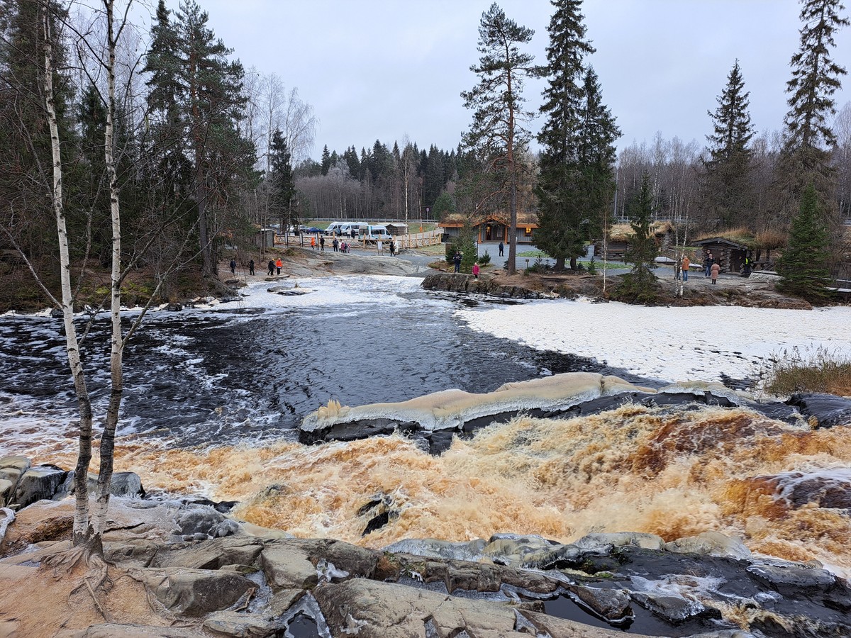 Затем мы поедем к водопадам Ахвенкоски. Эти 4 каскада и окружающая их природа были запечатлены в сценах фильмов «А зори здесь тихие» и «Темный мир». Гуляя по экотропе и висячим мостикам, мы дойдем до домика, возведенного для съемок второй кинокартины. Вы посмотрите на цвет воды реки Тохмайоки, а гид расскажет причину появления такого окраса. На «Аллее сказок» вы увидите знаменитых сказочных героев.