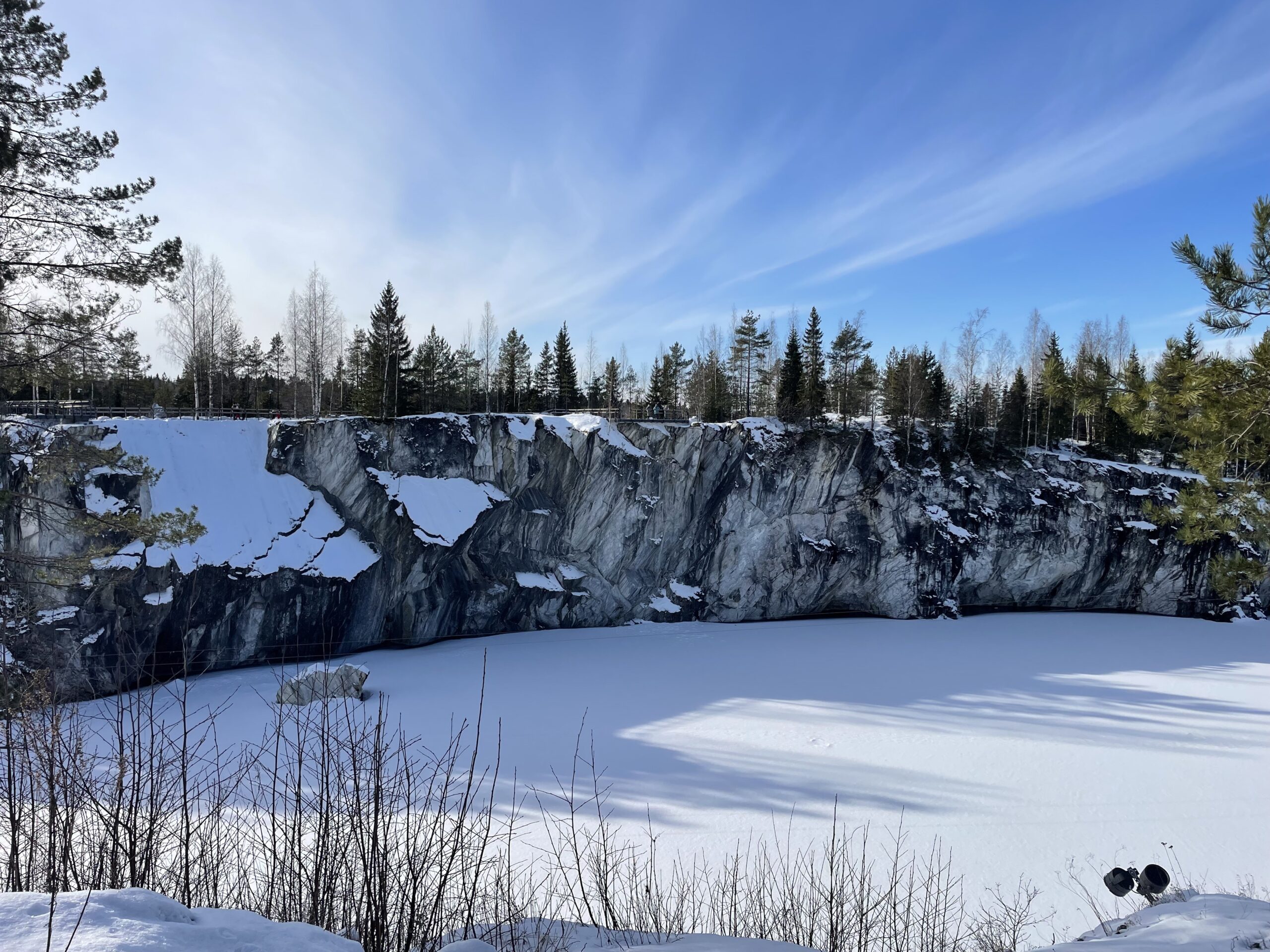 Основное внимание мы уделим изучению горного парка «Рускеала». Здесь гармонично сочетаются лес, озера, скалы и небольшие «островки» мраморного царства. Мраморный каньон раньше был местом добычи декоративного камня с интересным рисунком. Сейчас же его заполнили родниковые воды. В результате нас радует своей красотой чистейшее озеро.